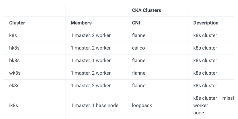 The CKA exam environment has 6 clusters. Each has its own set of nodes. You will be required to switch contexts between each of them during the exam. So, it’s very important to note that you do that before attempting the exam. One of the common mistakes people make is doing things on the wrong cluster. Toward the end of this blog, you will find additional resources to help you tackle these problems.