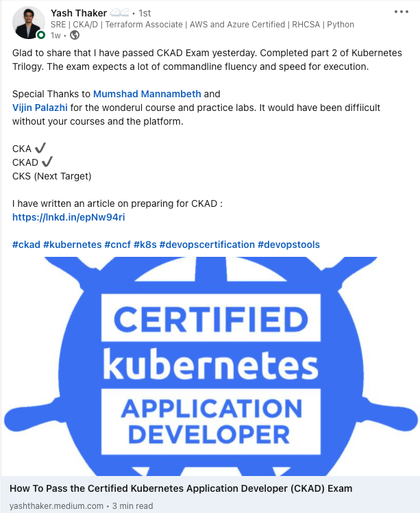 You might have heard about some of the upcoming changes for the CKAD exam objectives as announced by the Linux Foundation recently. These changes will go into effect on September 28: If you sit for the exam on the 28th of September or after it will be in the new format, irrespective of when you scheduled the exam or on what version your first attempt was (If you made a previous attempt). All exams after the 28th of September will be in the new format.