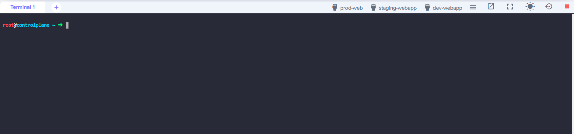2.The bottom half of the interface contains the terminal to the Kubernetes controlplane, which you would use to complete the tasks.