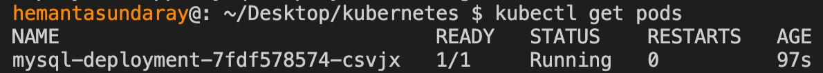 As you can see, a Deployment named mysql-deployment has been created. Next, let’s check the Pod status by running the following command: