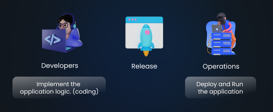 Releasing an application has two main parts: coding it and running it. Developers code the application. The operations team deploy and runs the application.