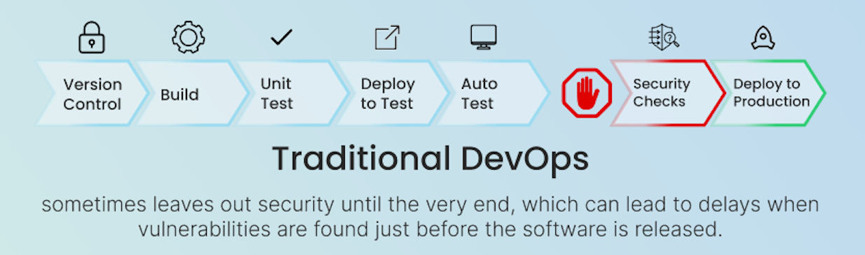 Even though DevOps focuses on speed and efficiency, security often gets left behind. In many companies, security checks are done separately by a dedicated security team, and usually at the very end—just before release.