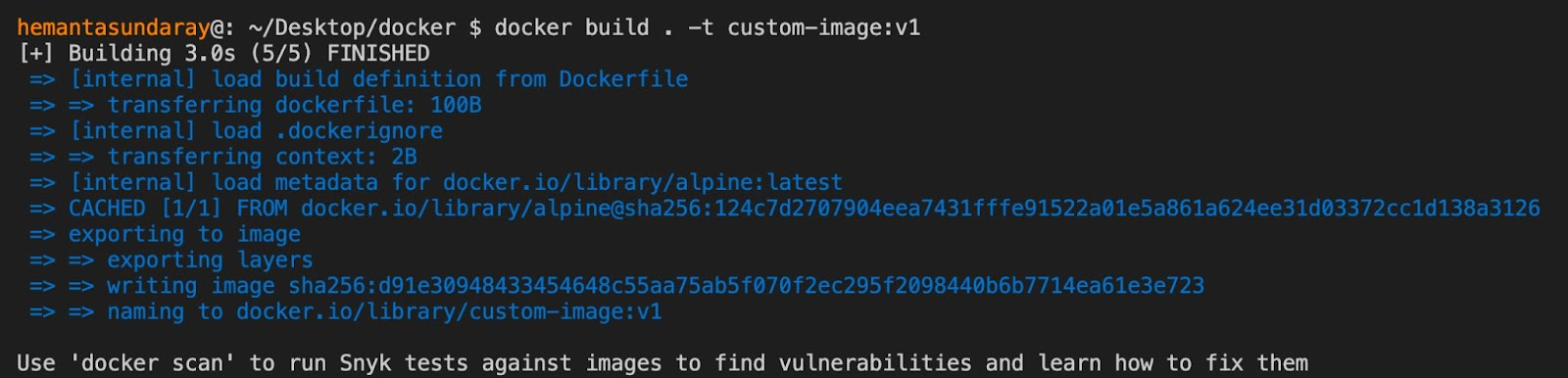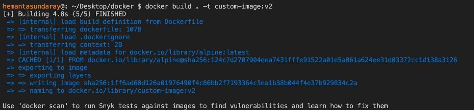 docker build . -t custom-image:v2Running the command above will provide you with the following output:
