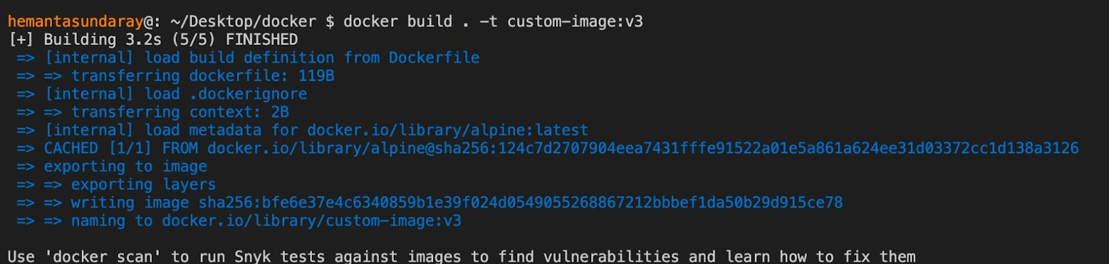 docker build . -t custom-image:v3Executing the command above will generate the following output:
