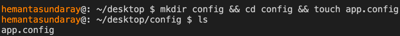 mkdir config && cd config && touch app.configNext, change to the config directory and run the ls command to confirm that the app. config file has been successfully created.