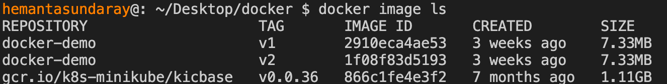 You should see docker-demo:v2 listed in the result.