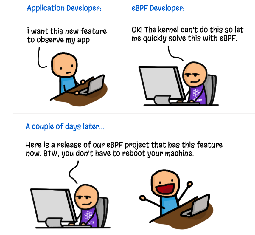 - eBPF's Strict Guard: eBPF programs go through a strict check (by the eBPF verifier) to ensure they can't misbehave. This makes eBPF more restrictive than regular kernel code.