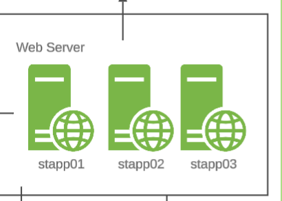 In front of these application servers sits the load balancer, stlb01. Its job is to distribute incoming requests among the three app servers so that no single one gets overloaded. This improves both performance and reliability, because the load is spread evenly.