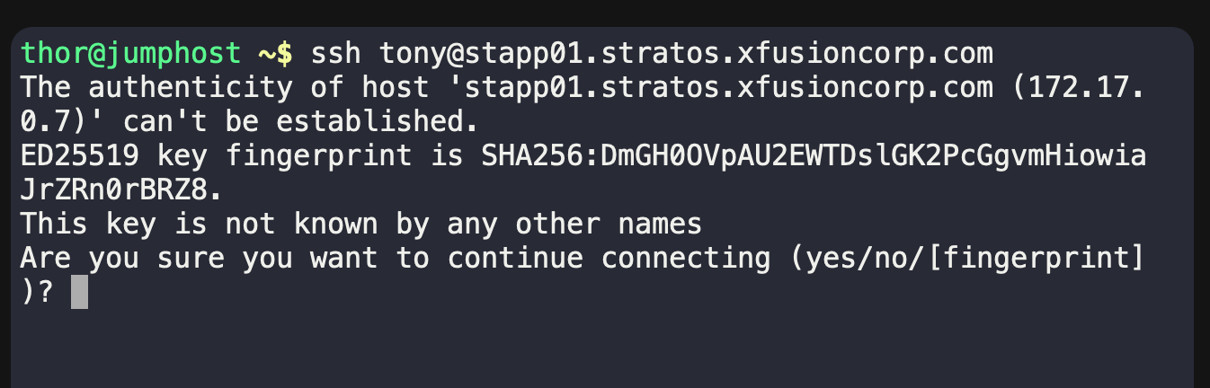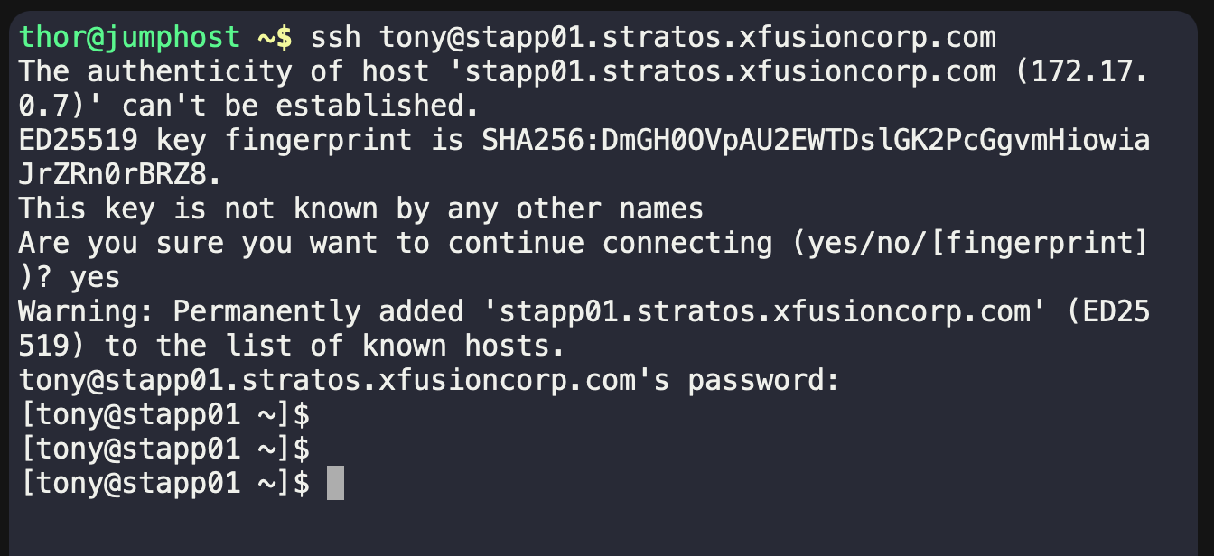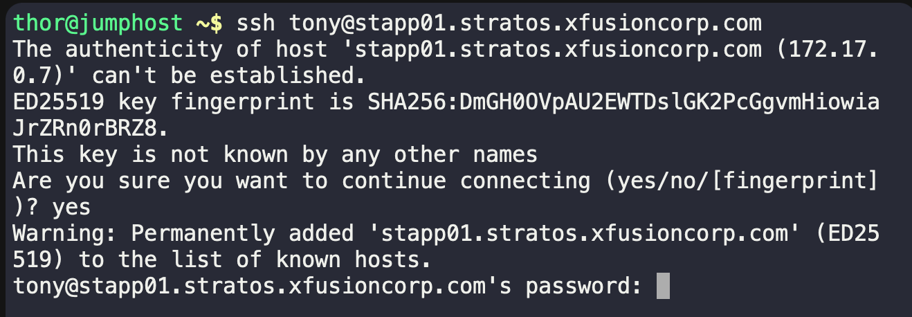 ssh tony@stapp01.stratos.xfusioncorp.comBreaking it down for beginners: