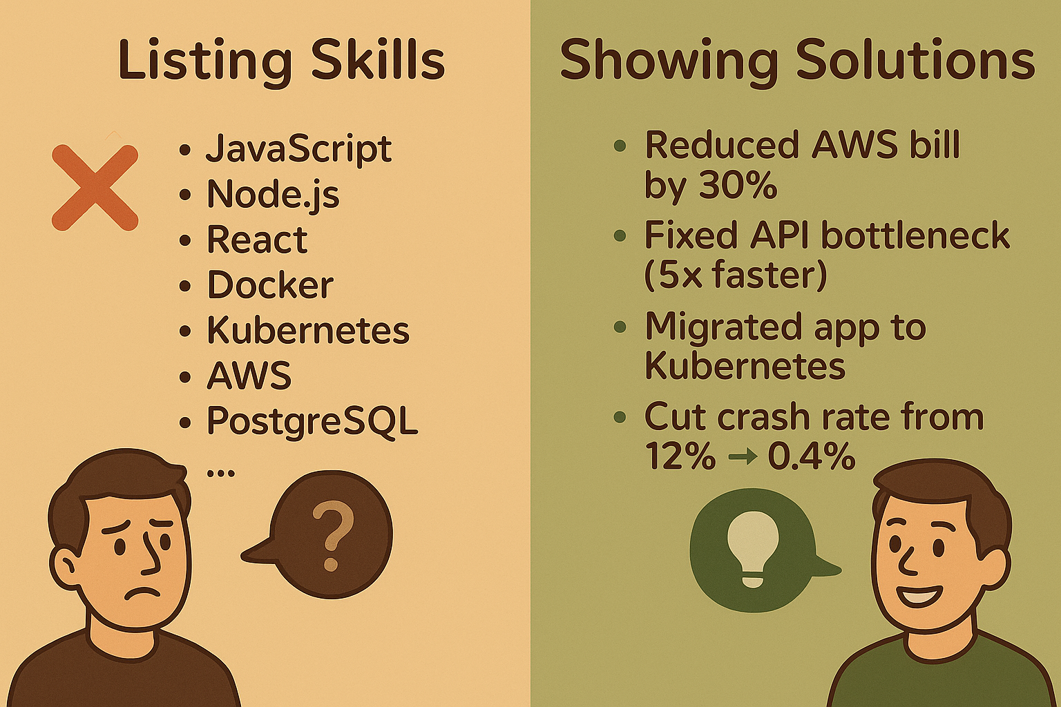 If I read this, as a client, it does not tell me a story about you. It does not tell me what you actually went through in your professional experience. How you used those tools, what you built, how you solved problems, how you evolved. It does not tell me WHO you are, and what you can do.