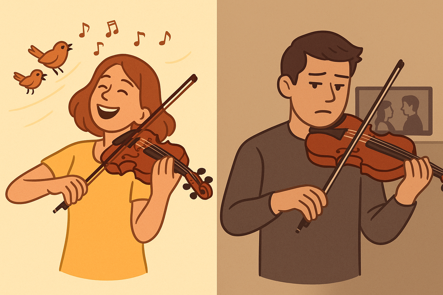 - Person B, who doesn't really like it: What will they do? They will dread it. "Aaaah… I have 3 hours free. And I have to play the violin. Hmm, I'll watch a movie first, then go practice."
