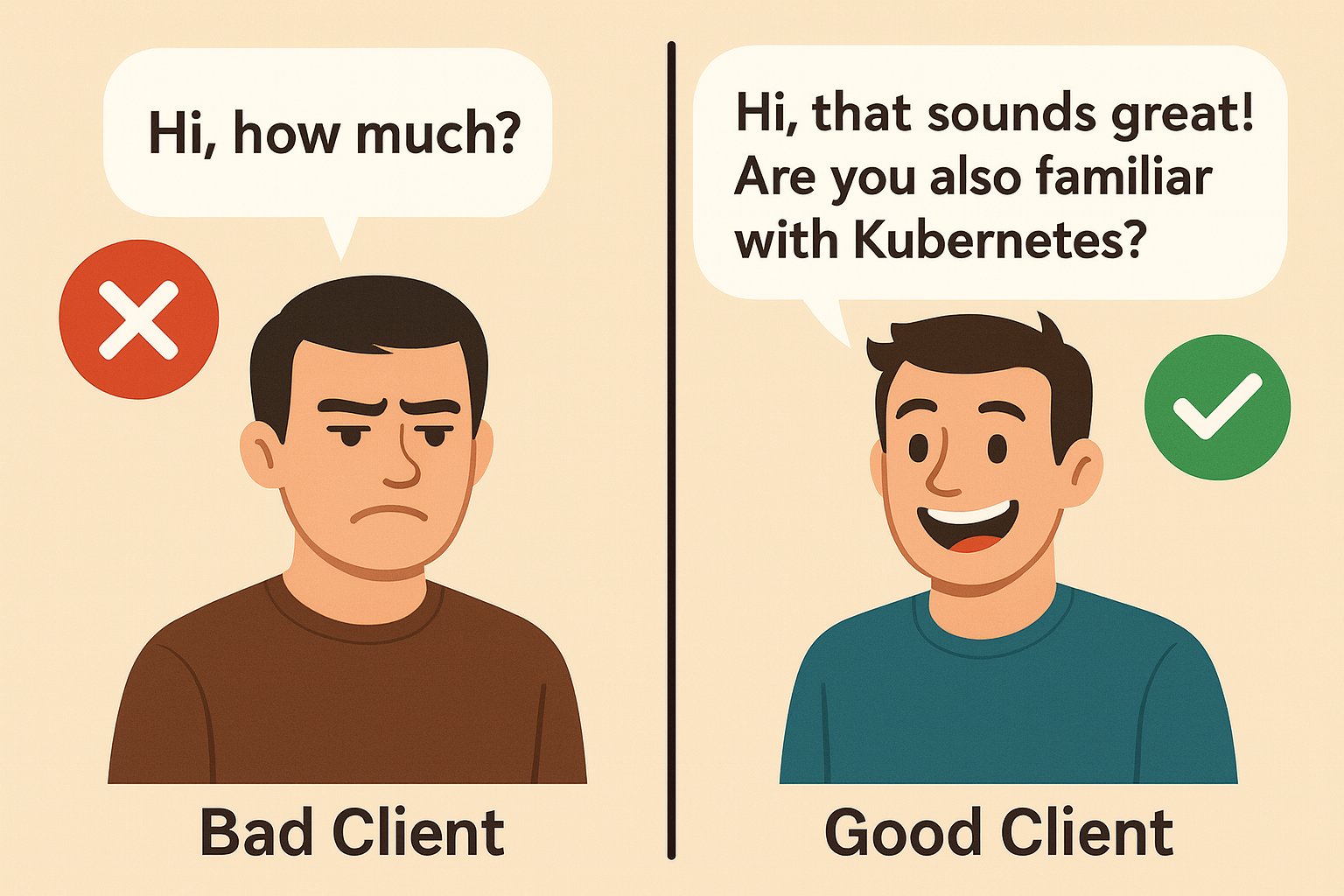 They lead with that. They don't even know yet what you did in the past. What your skills are. How much time this will take. What you will deliver. How the quality will be. No. All they want to know in the first second is: