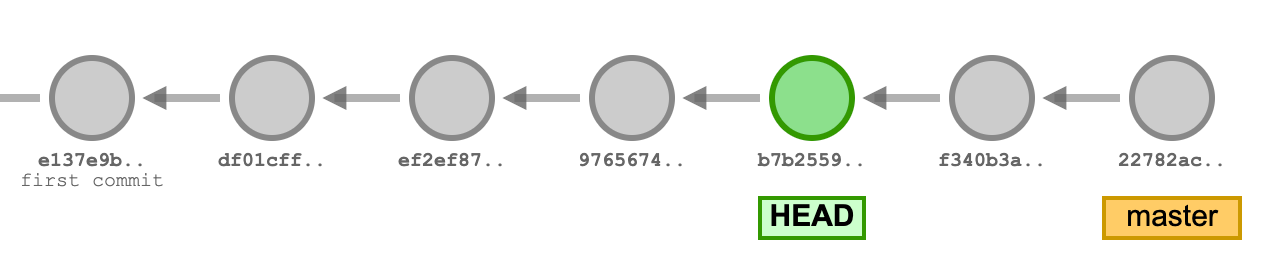 Currently, the HEAD is at 22782ac. So, when you run the command git checkout HEAD~2, the HEAD will now point to b7b2559 as seen below: