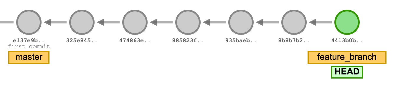 git checkout feature_branch or git switch feature_branchWhen you run any of the commands above, the HEAD will now point to the branch reference, feature_branch, as seen below: