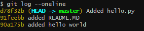 This tells you that the current branch is now pointing to the commit with the hash 1a6fd59, which has the message Added hello.py
