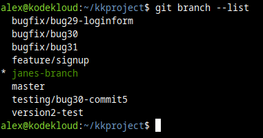 git branch bugfix/bug29-loginformThis would create a new branch called bugfix/bug29-loginform. And it would be based on the current branch we're in.