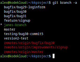 git branch bugfix/bug30And then we can push this branch to our remote repository with this command: