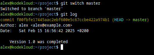 # By default, this commit will happen in the "master" branch, as we never explicitly created or switched branches, up to this point.