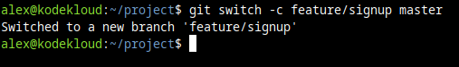 line5We could create a new branch, call it feature/signup, and base it off the master branch: