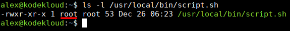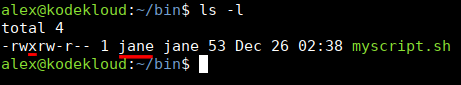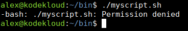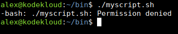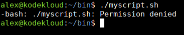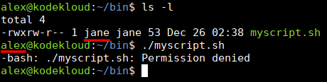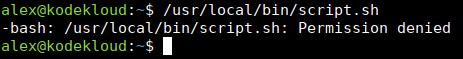 Here, the file is owned by jane. And execute is enabled just for that user, jane. However, if another user like alex tries to run it: