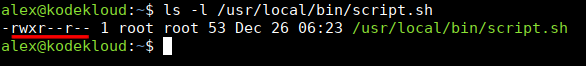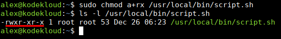 After running sudo chmod a+rx /usr/local/bin/script.sh the file permissions look like this: