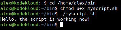 sudo chmod a+rx script.shNotice there's a slight difference (compared to Option 1 in the previous section). Instead of: