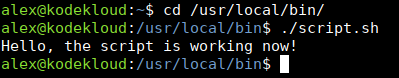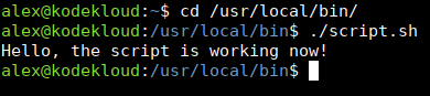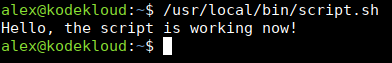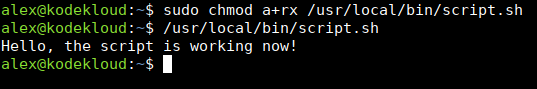 sudo chmod a+rx /usr/local/bin/script.shNow run it by providing the full path to it: