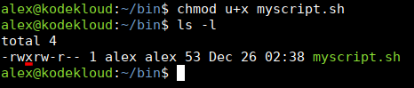 chmod u+x myscript.shIn this command: