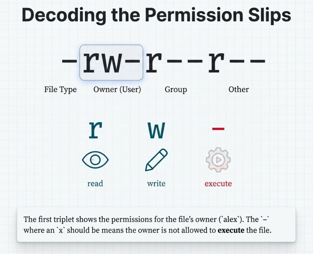 alex. - The file owner permissions (first set of letters) have