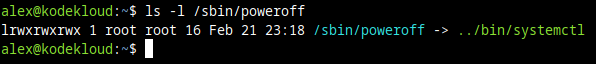 Instead of throwing a "Command not found error" this will work. Because poweroff is a symbolic link that points to the systemctl command. And when we run poweroff, we're actually redirected to systemctl, which will take care of powering off the system.