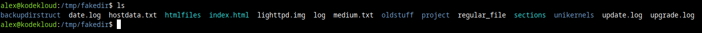 Let's create a symbolic link that points to the /home/alex directory, and call the link fakedir.