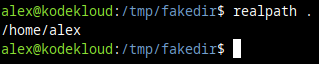 And to prove that the command prompt is "lying" to us, we can use the realpath command. One way is to ask realpath "What is the current directory?" The . in the next command represents "current directory".