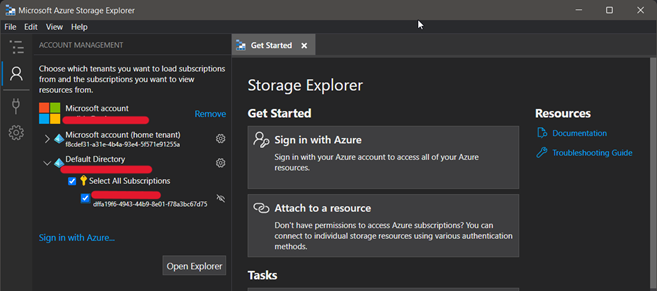 Setup Azure Storage Explorer