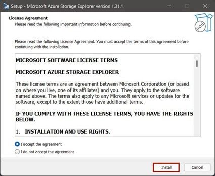 Now that you've downloaded the Azure Storage Explorer installer let's proceed with the installation. This is a crucial step when you want to Install Azure tools for your development environment: