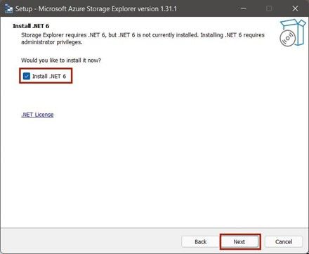 - You may encounter a window prompting you to install .NET 6 while installing Azure Storage Explorer. This is because the software relies on the .NET 6 runtime, and it needs to be installed on your system for Azure Storage Explorer to work correctly. If this dialog box appears, it means you don't have .NET 6 installed. To proceed, simply select 'Install .NET 6' and click 'Next'.
