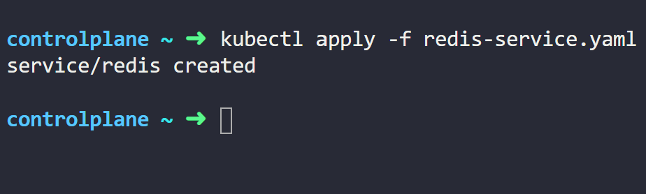 kubectl apply -f redis-service.yamlRunning the command will give an output similar to this: