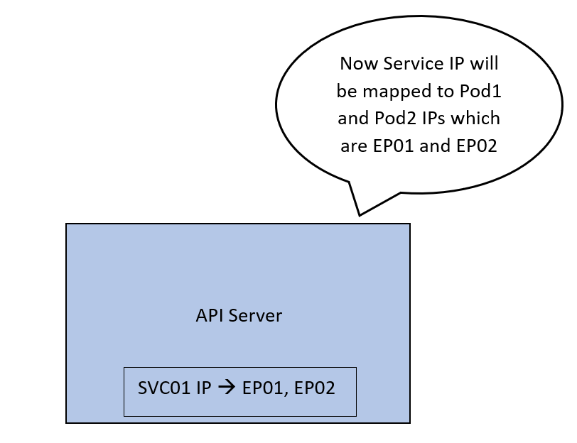 Now the API server maps the IP address of SVC01 to 2 IP addresses, EP01 and EP02.