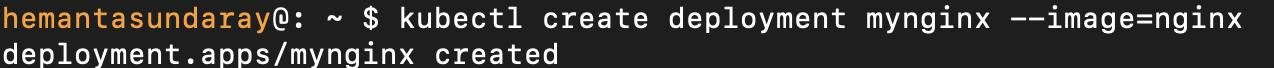 kubectl create deployment mynginx --image=nginxThis command creates a Deployment resource named mynginx using the nginx Docker image. The Deployment creates a Pod that hosts the container running the nginx web server. Note that you can choose any name you prefer for your Deployment.