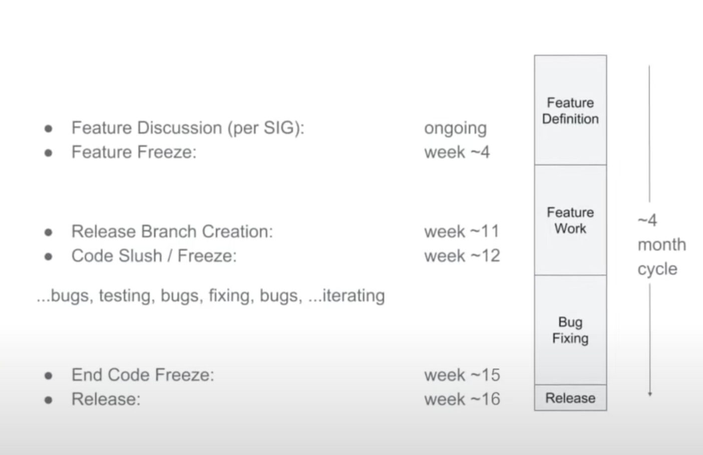 Kubernetes releases happen approximately 3 times every year. Each release has a 4-month lifecycle. We have an upcoming video where we deep dive into Kubernetes release cycles, so be sure to subscribe to our channel to be notified when that video is out.