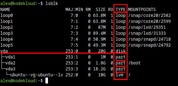 sudo mkfs.ext4 /dev/vda2This covers a typical use case of the lsblk command. An extra tip: