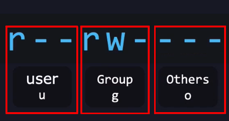 - And the third set refers to permissions for other users. Meaning anyone else that is not the user that owns that file, and not part of the group that owns that file.