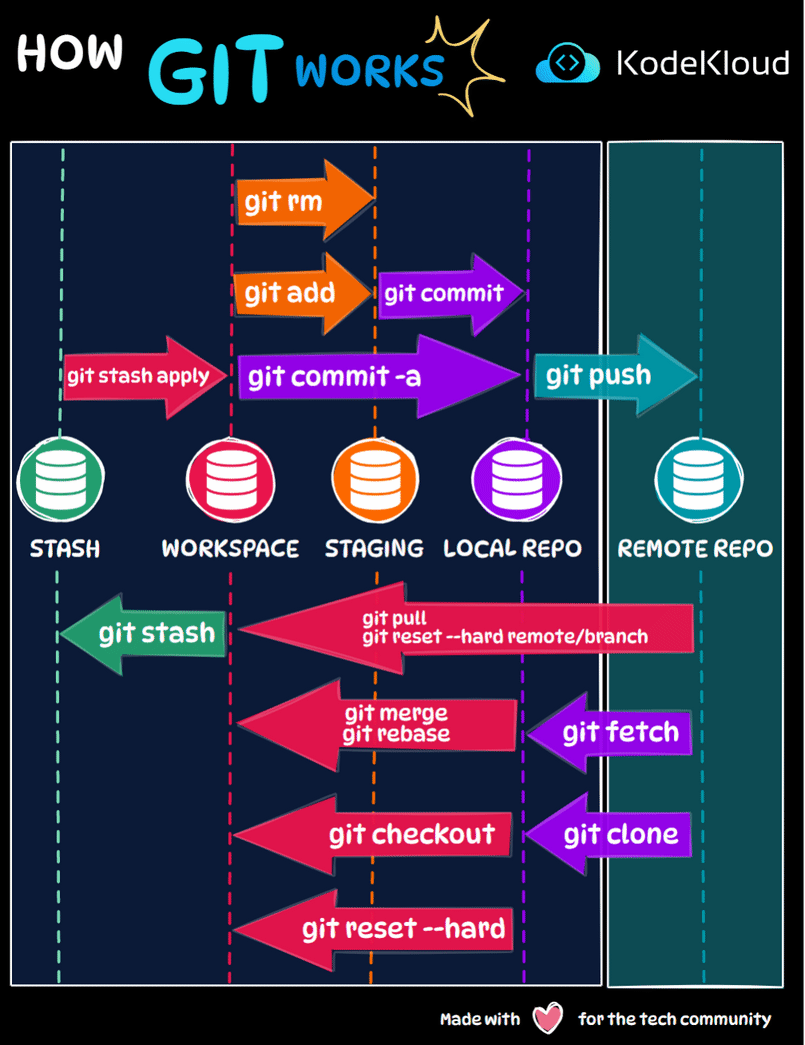 git add, or usegit commit -ato stage and commit in one step. - π Staging Area: Finalize changes by committing them with