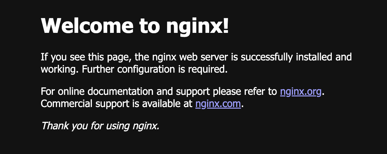 While the terminal session is running, open a web browser and navigate to "http://localhost:8080" to access the "nginx" server running inside the Pod. You should see the default "Welcome to nginx!" page served by the "nginx" web server, indicating that the local request is being forwarded to the Pod.
