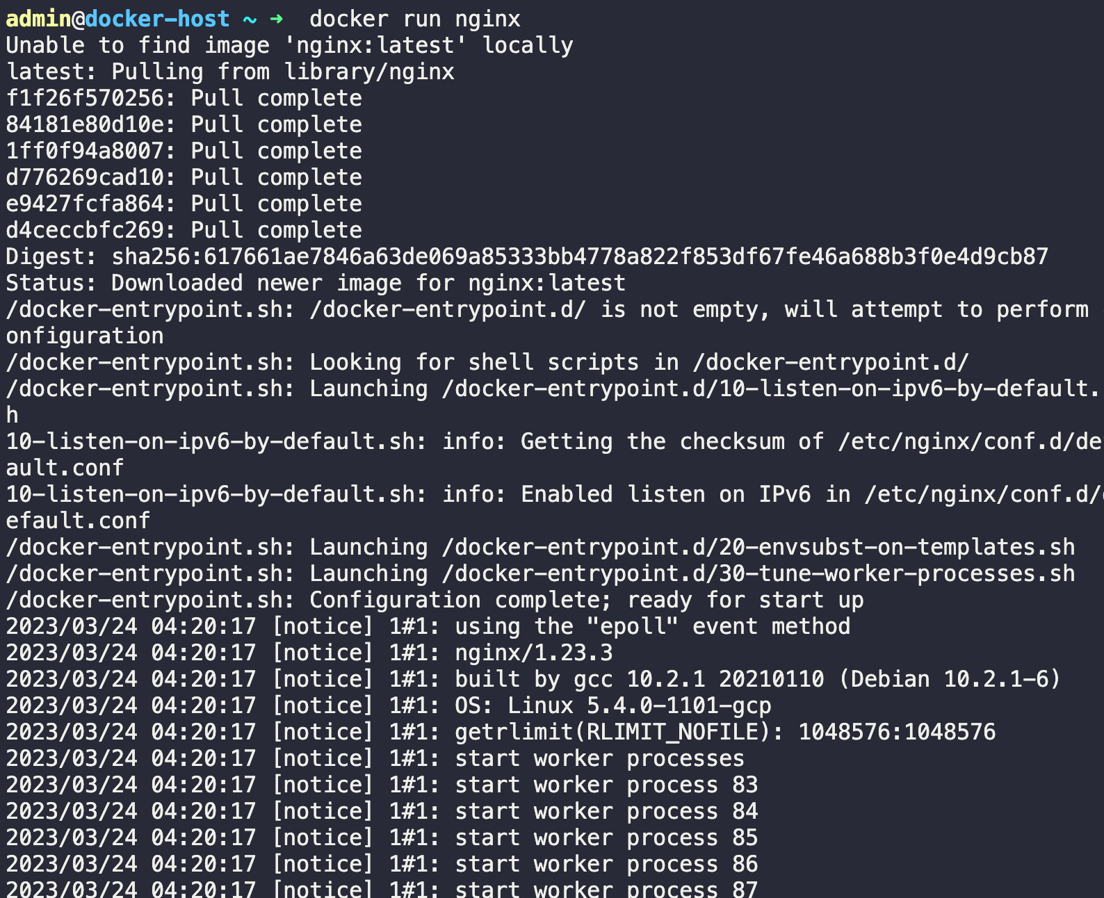 docker run nginxYou should see an output similar to this: