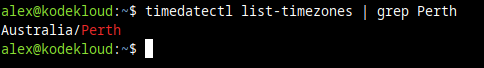 A faster way to look for your timezone is to tell timedatectl to list the zones, and then send its output to the grep command. Which, in turn, will filter out only content that matches with Perth in this case.