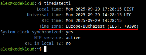 Running this first is a good way to get a reminder on the syntax of timezones to pass to the timedatectl command. In this case, the timezone is set to Europe/Bucharest. Most timezones work this way, in a form like: