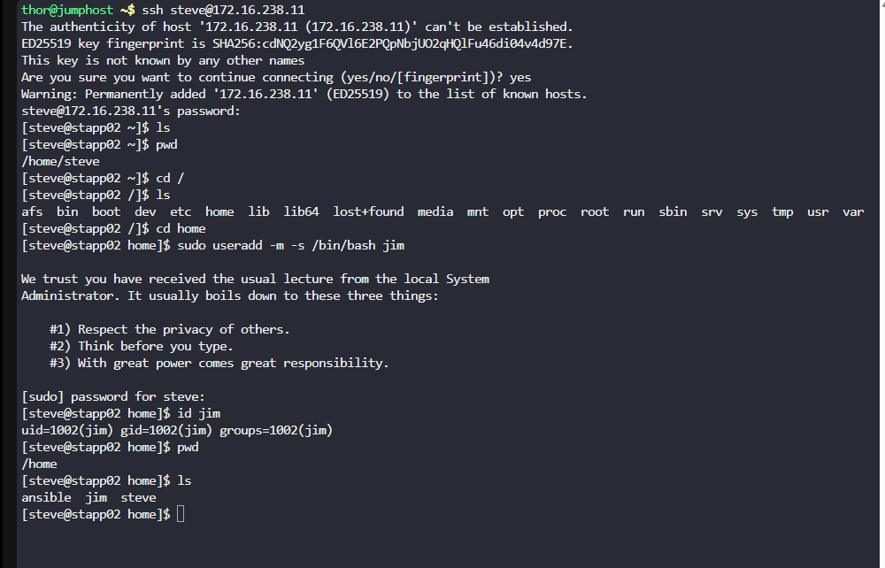 Note that the task is: “[c]reate a user with non-interactive shell for your organization on a specific server. This is essential for service accounts and automated processes that don’t require interactive login capabilities.”