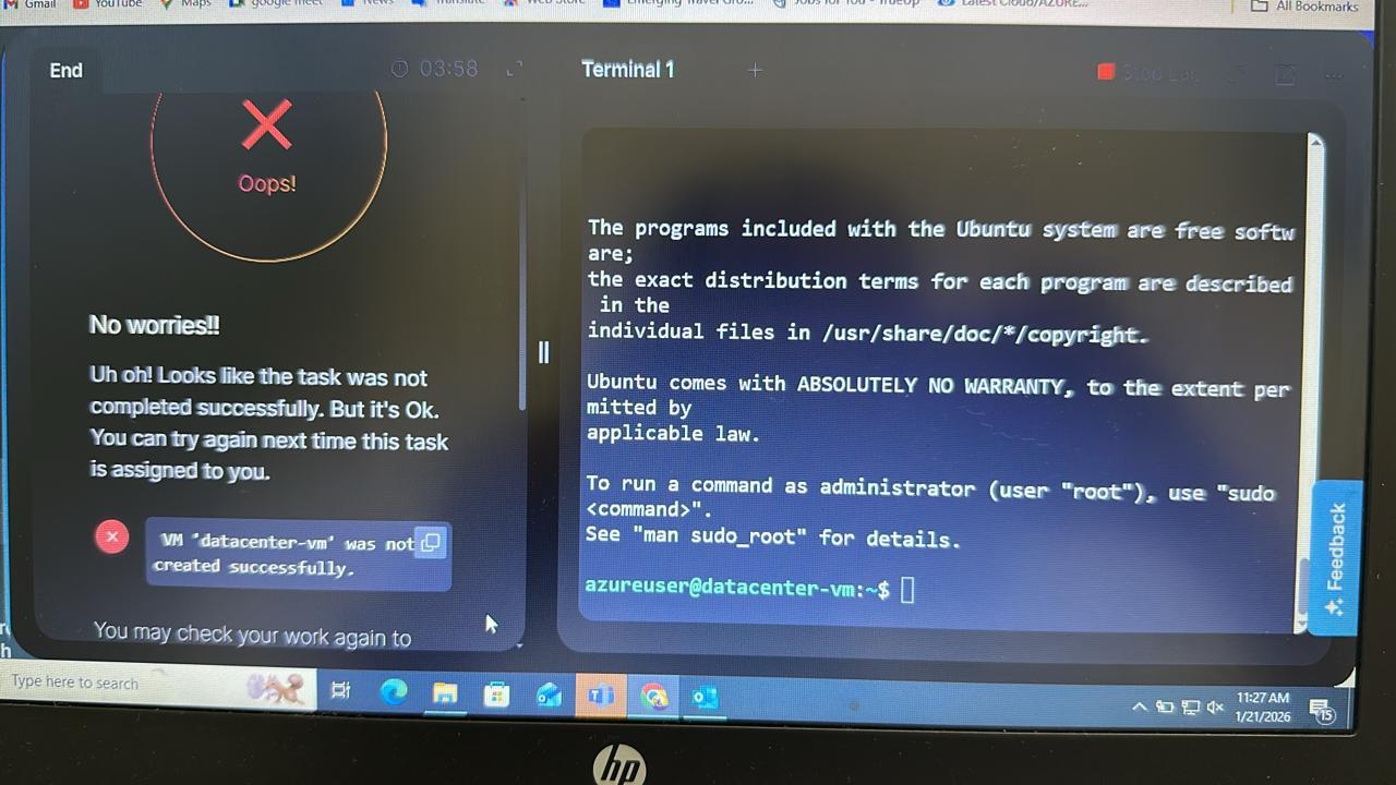 I need help regarding this as I believe there is an issue with the task because the rg should be in east US rather than west US.