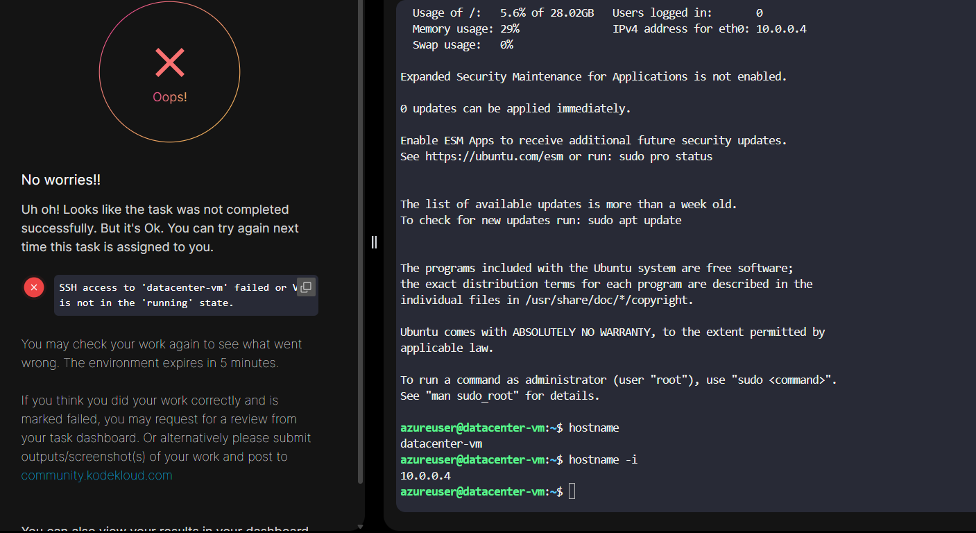 I was able to ssh to the new VM, but the lab says it was not done.