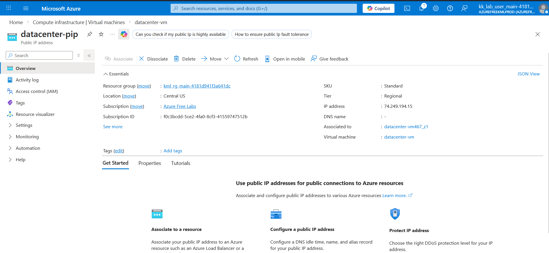 I have created SSH Key and Virtual Machine as per the requirement and attached a newly created public ip.